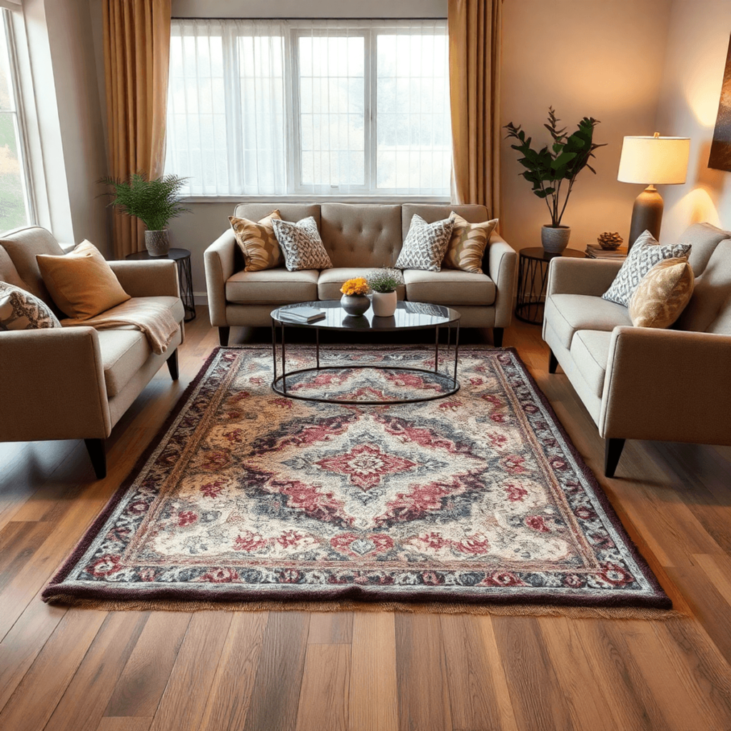 Also: Choose textured or patterned rugs to add richness. Check discount sites or FB Marketplace.
